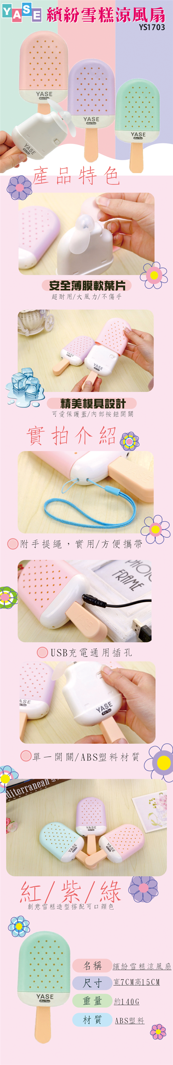 商品說明 品名:【YASE】繽紛雪糕涼風扇YS1703
